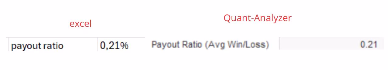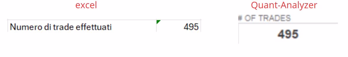 In totale, il sistema ha effettuato 495 trade. Considerando che questi dati sono stati raccolti il 14 marzo, ovvero a 19 mesi esatti dall’inizio del track record, si può calcolare il numero medio dei trade al mese: 495 / 19 = 26 trade al mese in media. È importante sottolineare che i risultati di Quant-Analyzer ed Excel coincidono, confermando così l’accuratezza dei dati analizzati.