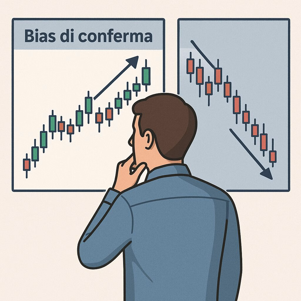 Il Bias di conferma, o confirmation bias, è la tendenza psicologica che spinge un trader a cercare solo le informazioni che confermano ciò che già crede, ignorando tutto ciò che potrebbe contraddirlo. Nel trading questa distorsione cognitiva può portare a decisioni irrazionali, alla mancata gestione del rischio e a perdite significative. Ogni volta che un trader interpreta il mercato in modo selettivo, il bias di conferma distorce la sua visione e lo allontana dalla realtà dei dati.